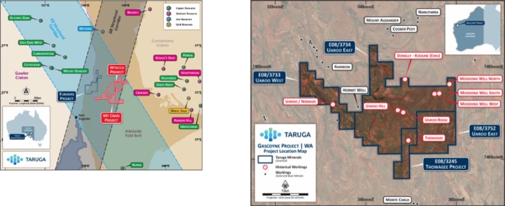 Taruga also holds a portfolio of highly prospective IOCG-style exploration projects in South Australia, including Flinders, Torrens and MCCP, located approximately 80 km north of Port Augusta and within the broader Gawler Craton mineral province.